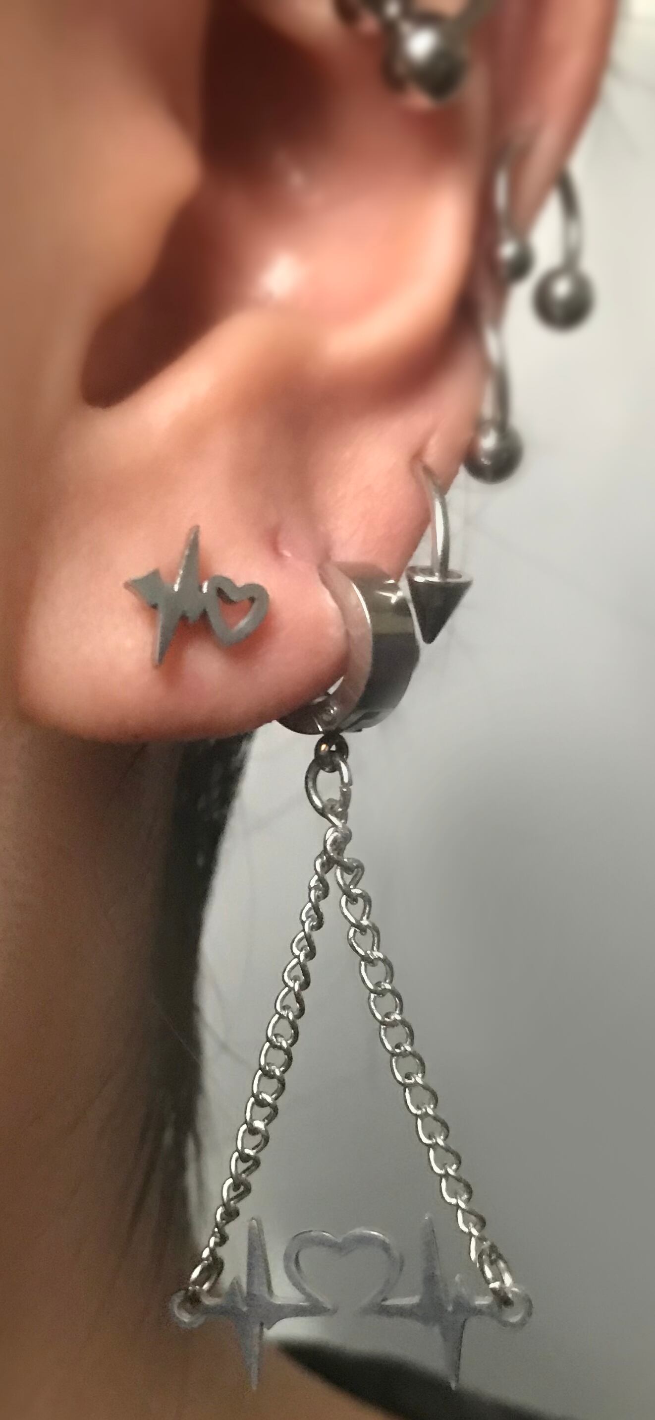 可愛い心電図とハートのフープピアスで、黒コーデやサブカルな服装にも合わせやすいのもポイントです!!